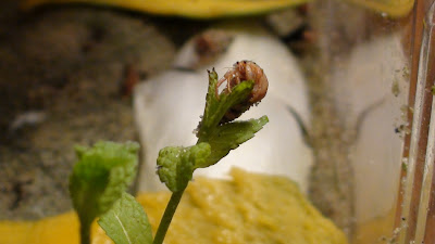 A Baby Caribbean Hermit Crab on a Mint Leaf ('thinking about something?'):