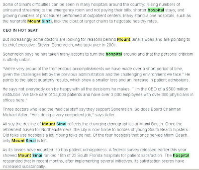 The biggest kicker is I had an impeccable record, top scores and learned the greatest gift at a super young age. It is all a bunch of numbers being moved around by people who shouldn't be running the system. Below are public articles on Mount Sinai's Miami Hospital division . . .