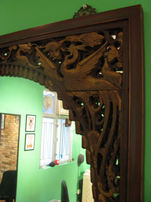 It has hand carved phoenixes (spelling ?) and rats eating grapes. perfect.