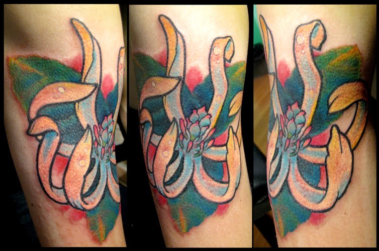 Some new, some finished, some still going, some tattooed, some painted...I did this champaca flower a couple of days ago. This is finished.