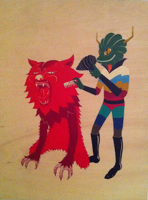 Prodip's work, shown in the smaller annex space, connects beautifully with the space and it's history too, as they show a very different vision that involves science and art. Depictions of aliens and UFOs. One in particular shows a mutilated cow, the victim of an alien investigation.