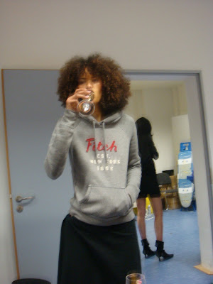 Snapity Snap! Hair done and Make up done... Now a glass of champagne be4 we hit the runway!