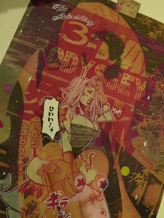 Final Art for HitchHiker's show. Silkscreen, acrylic on vintage poster. Framed. 50x70 Edition 01/01. April 2010