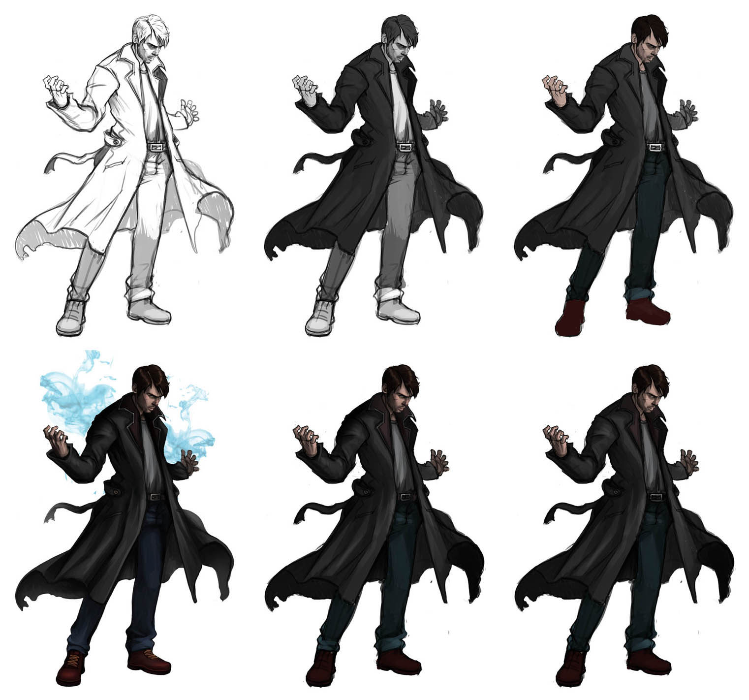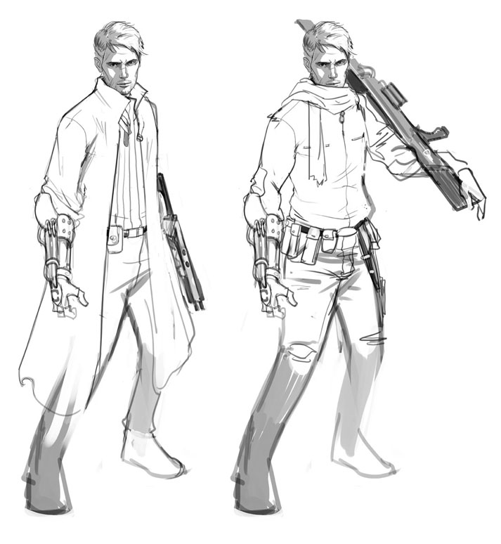 First off, after getting a brief, I would usually create a series of loose sketches. It's for me to get the feel and look of the campaign as well as to look into the kind of clothings being donned on the character. Pose is also another key factor as well as some gadgets depending on the setting.